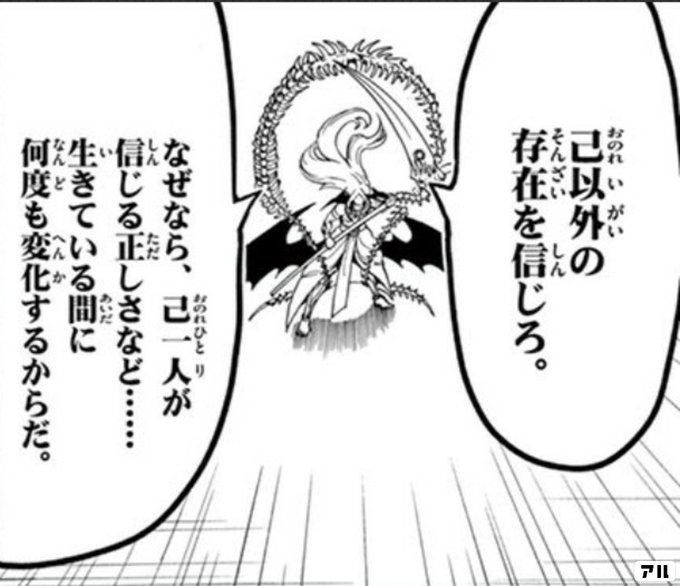 己以外の存在を信じろ なぜなら 己一人が信じる正しさなど 生きている間に何度も変化するからだ マギ アル
